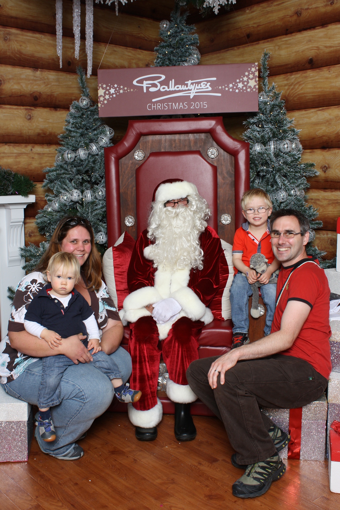 CJ understood what was going and perfectly happy to sit beside Santa but LJ wasn’t very happy about sitting on Santa’s lap. So, we swapped for a family photo! And, surprisingly for a photo like this, it didn’t turn out too bad.