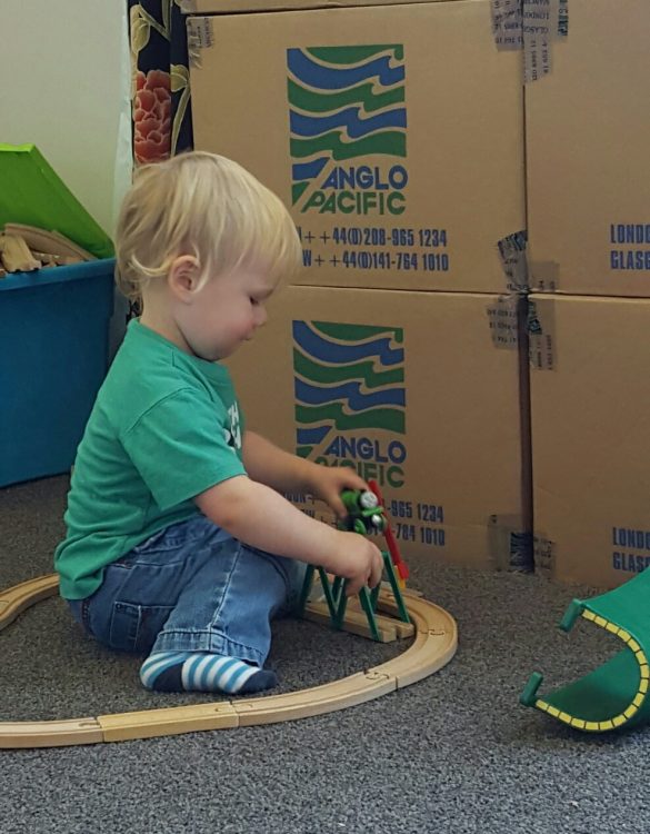 Once we got home he was straight into the playroom, playing with the trains while CJ finished his lunch. He has started putting the trains on the tracks and pushing then round.