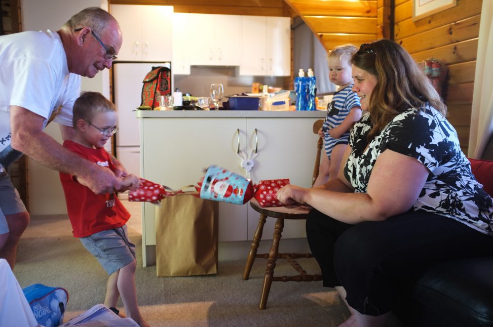 S1 got a giant cracker for CJ which we forgot on Christmas day. It was so big GD had to help him pull it.