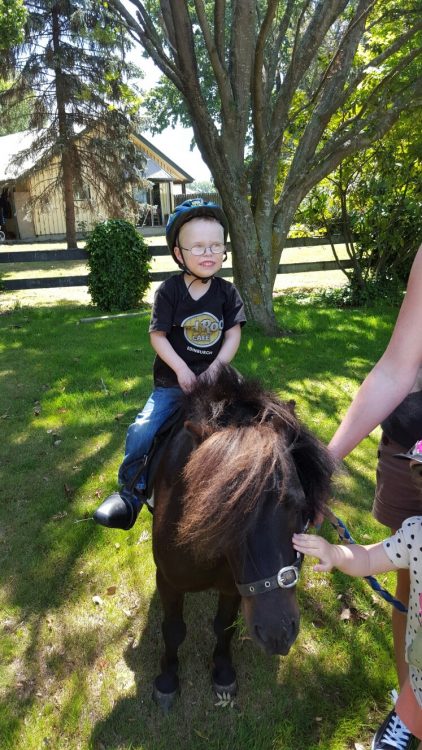 So, not only did the boys get to play on the slide, swings and trampoline, but CJ was also allowed a pony ride.