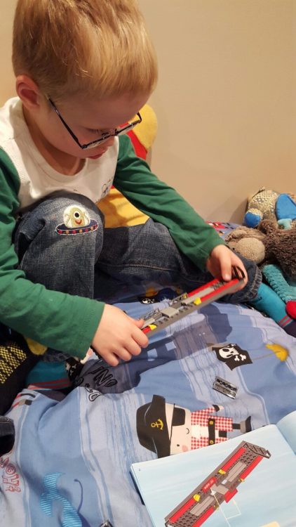 He has been building a little each night, and tonight we were finishing a truck (which will carry a bulldozer). It is amazing to watch – he concentrates so hard on it, following every instruction and carefully putting it together.