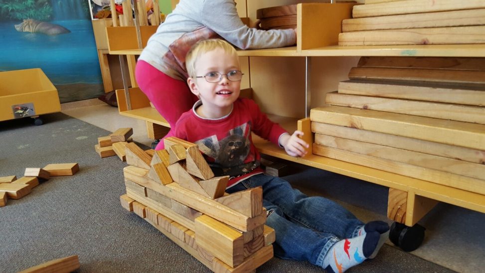 Today when I picked CJ up from Kindy, he was very busy building a boat out of the big blocks!