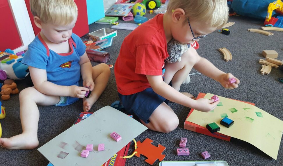 I think the best activity was playing with the stamps and ink pad, well that was until S2 arrived home and then he started playing with different colored waters in the shower with them. They spent ages pouring different colors together to make new ones!