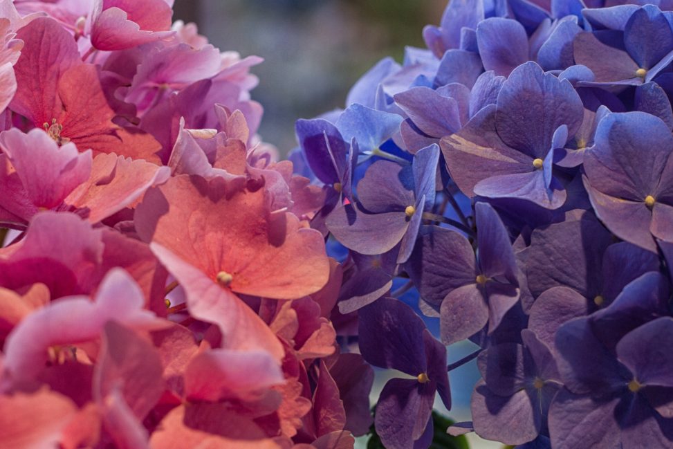 I thought the hydrangea flower colour was determined by soil acidity ……………………….. maybe two colors on the same bush means the soil is completely neutral???