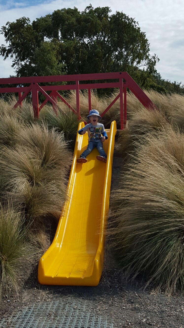 This morning my car didn’t start (a random flat battery), so we had to walk down to kindy. As we are running a little late, we took a shortcut through the playground and CJ was desperate to play – but he was happy with the promise that on the way home we would stop.