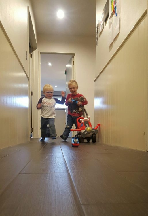 The boys ran up and down the hall, chasing Thomas as he zoomed around, trying to avoid the little feet chasing him. The endless giggling (from everyone) was almost deafening as it echoed around the hallway.