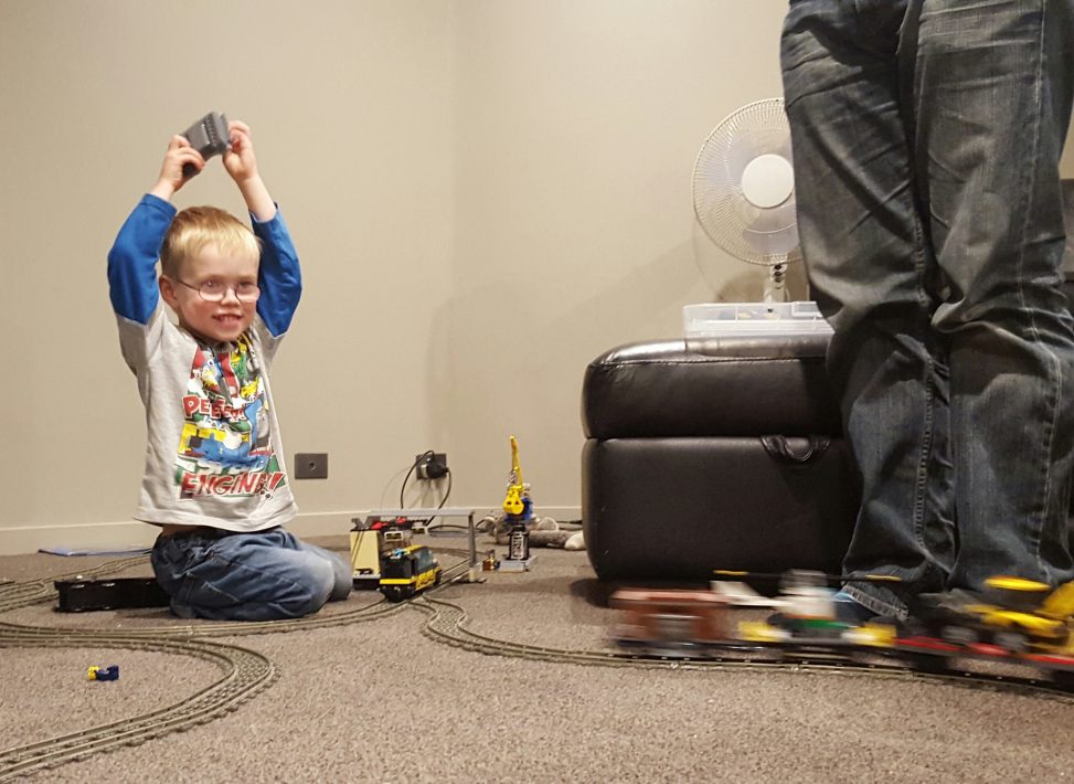 Tonight we setup the LEGO Train track for CJ. He was so excited and spent ages setting up the train, filling the carriages with passengers, with more waiting at the station.
