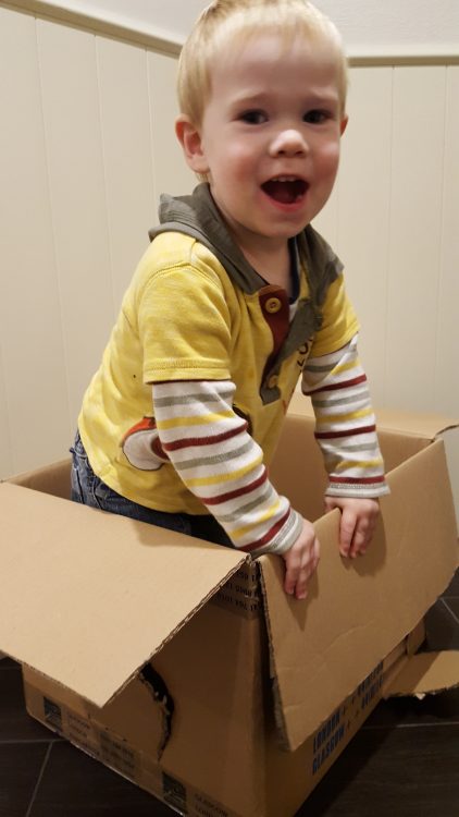 With the morning excitement over, LJ amused himself by playing “cat” in Toffee’s entertainment box, until we had to go and pick CJ up from kindy.