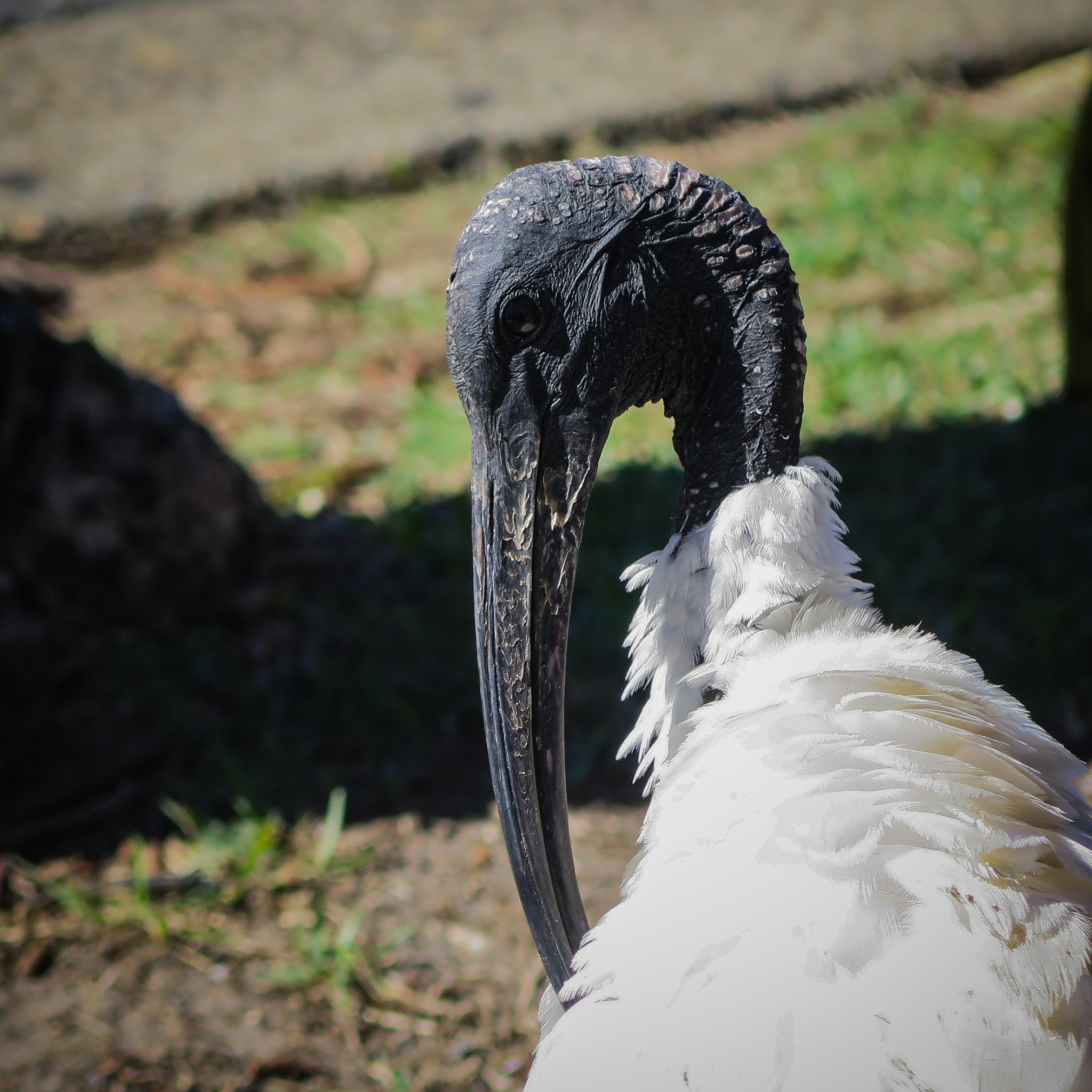 The Ibis birds wander everywhere around here. This one stopped beside our table when we were having coffee and it is the first time I have noticed the variety of colour and texture in their head. Perhaps they aren’t as boring as I had assumed.
