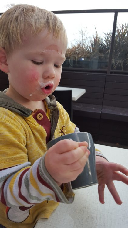 We ordered LJ is normal fluffy – but when it arrived, it was bigger than my coffee! LJ was delighted and spent a long time making sure he got every last drop from the cup.