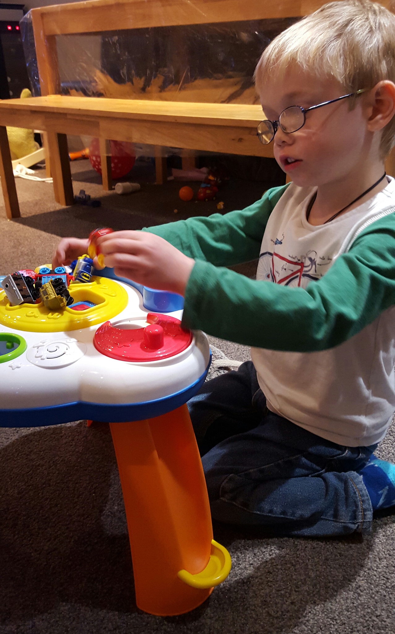 When I asked CJ what he was doing, he told me that he and his minis were playing “Octonauts”. Each mini was assigned the name of one of the Octonauts from the show, and the table was their submarine “the octopod”.