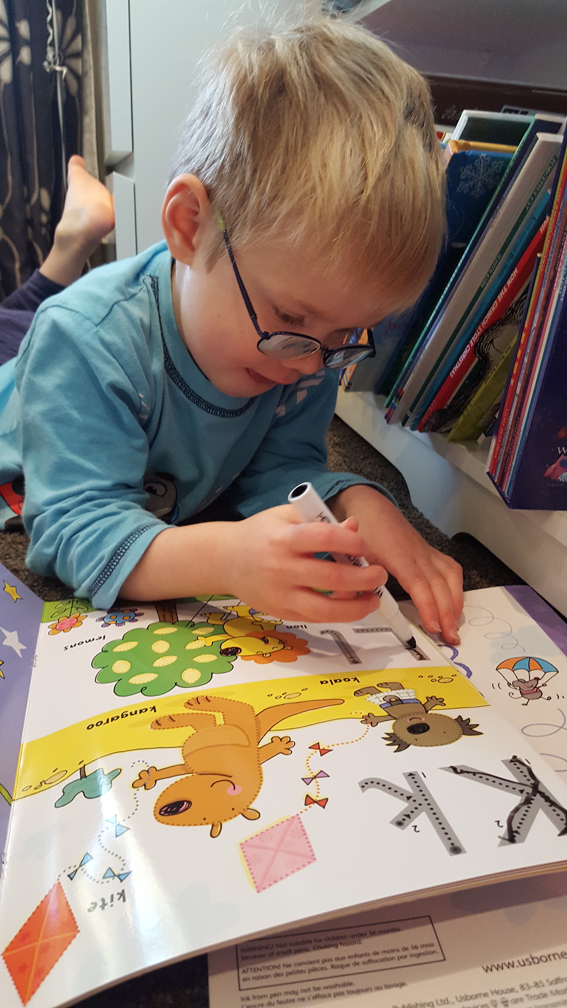 This morning CJ pulled out his alphabet book and started tracing all the letters. He quietly worked his way through from A to Z.