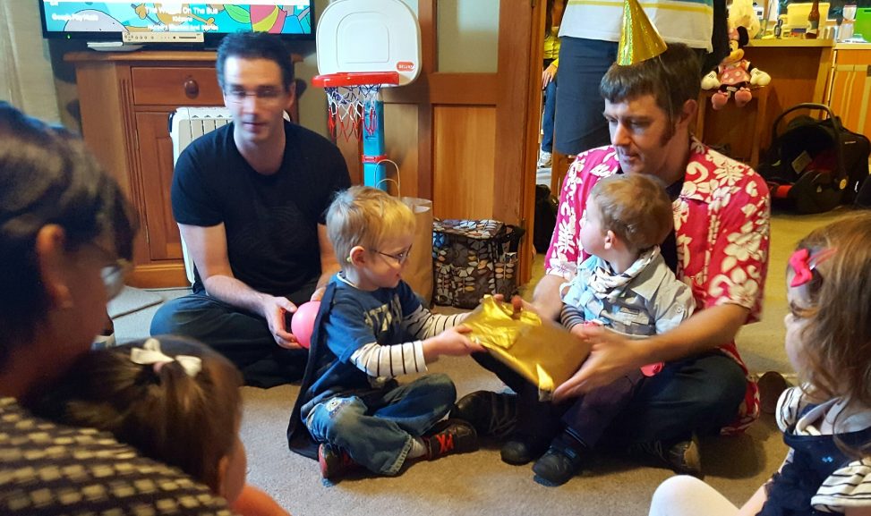 CJ had a great time, there was even home-made play-doh to play with! But his favourite part of the party was pass-the-parcel. All the kids stayed in a circle and past the parcel to each other – enthusiastically unwrapping a layer when the music stopped. But then CJ got to unwrap the winning layer – he was so excited!
