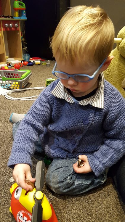 LJ loves posting money into the money box. It’s his favourite new game – and luckily for me, he is content with it reposting coins that he has already posted and not be ones!