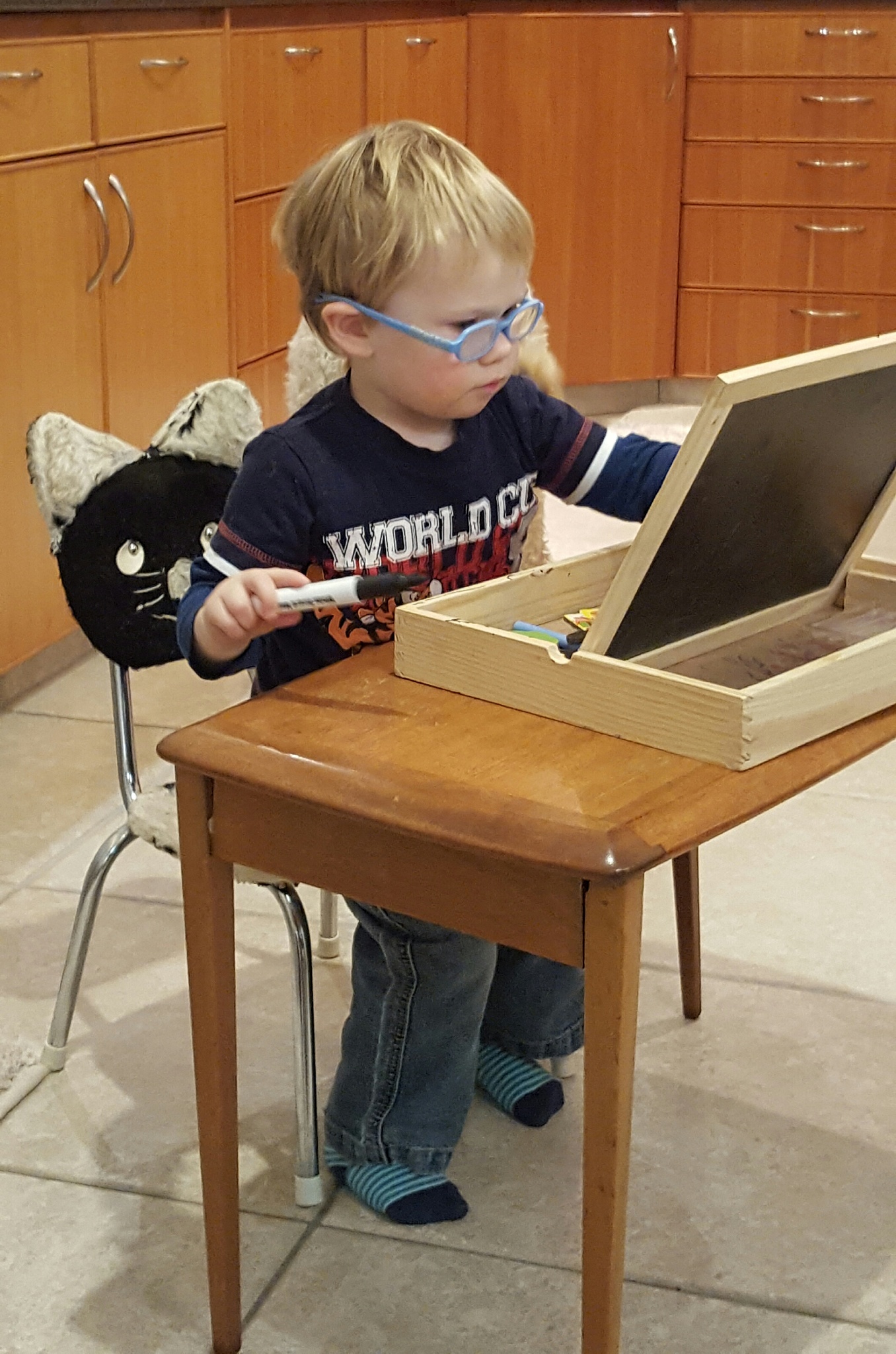 LJ loves the drawing set that Nan and GD have – he will spend ages at his little desk, drawing a scene and then adding the magnets to finish it.