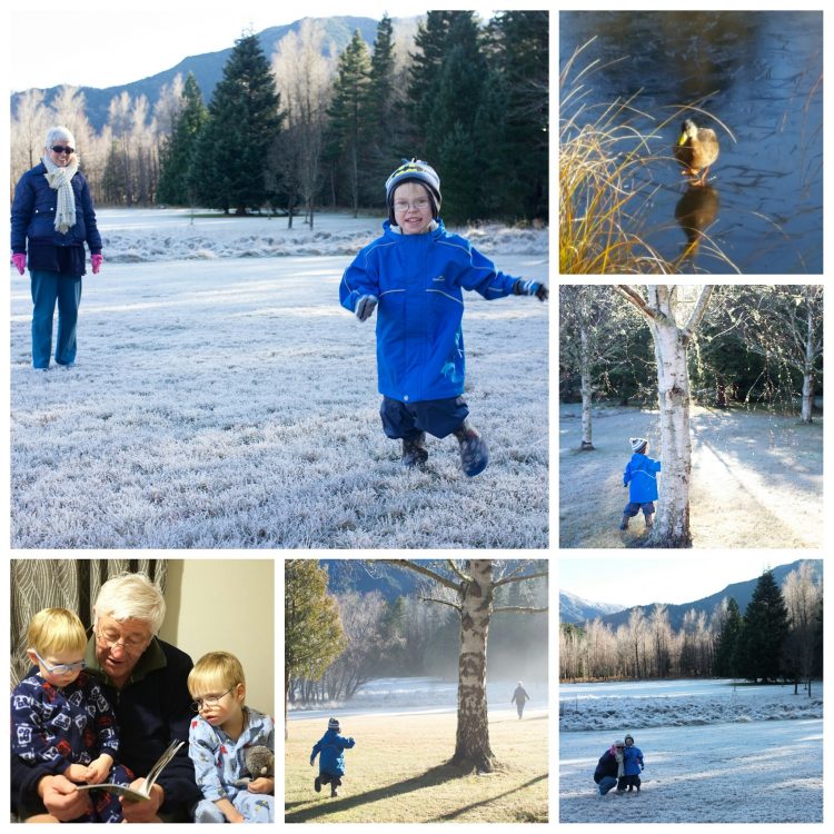 This morning we went for a walk in the forest. It was beautiful after a very heavy frost. In fact, it was so chilly that the little pond had frozen over and the ducks were having to walk across the ice! ‘much to the delight of CJ and LJ!