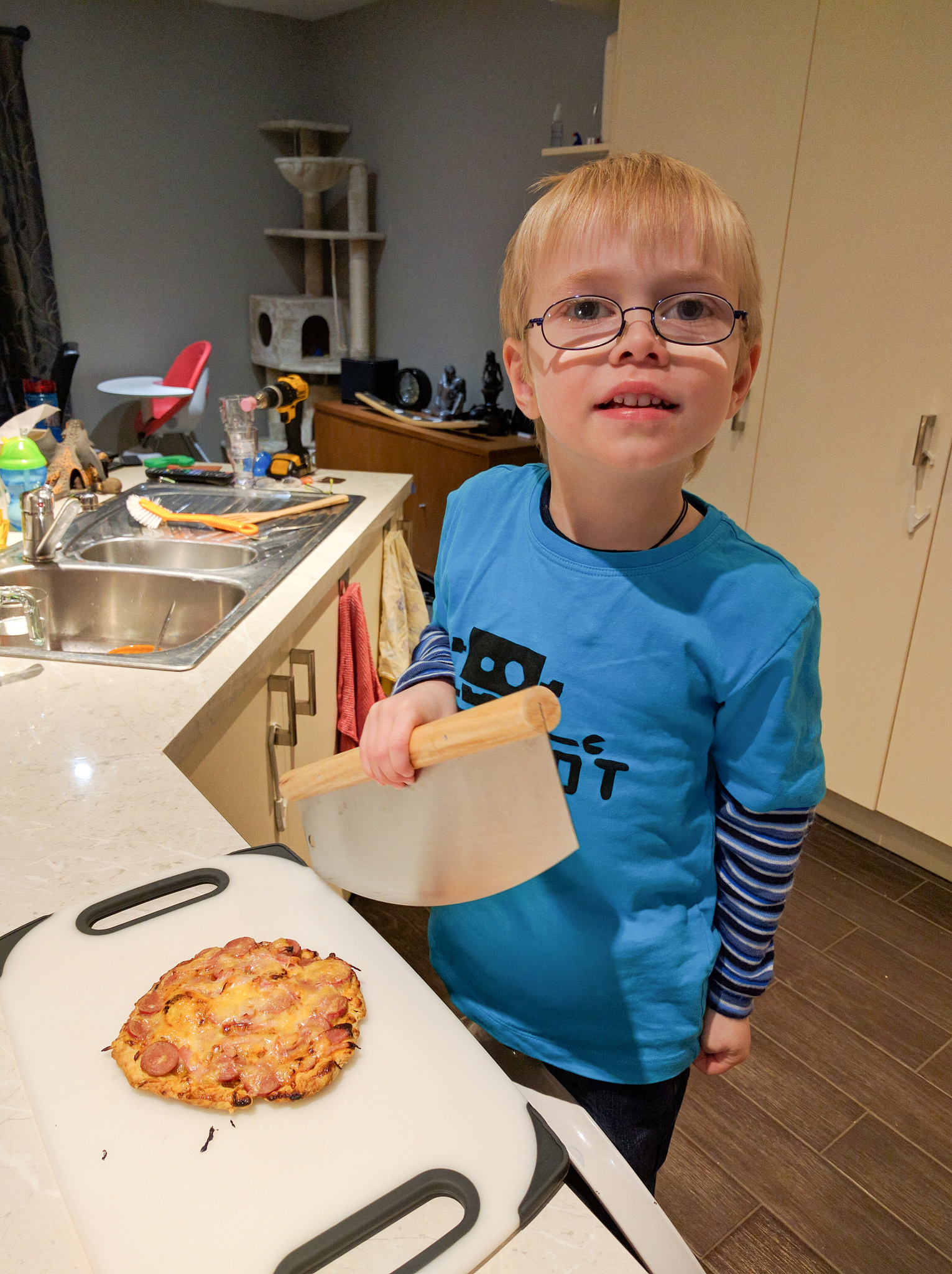 He wanted pizza for dinner, so the two of us whipped one up quickly.