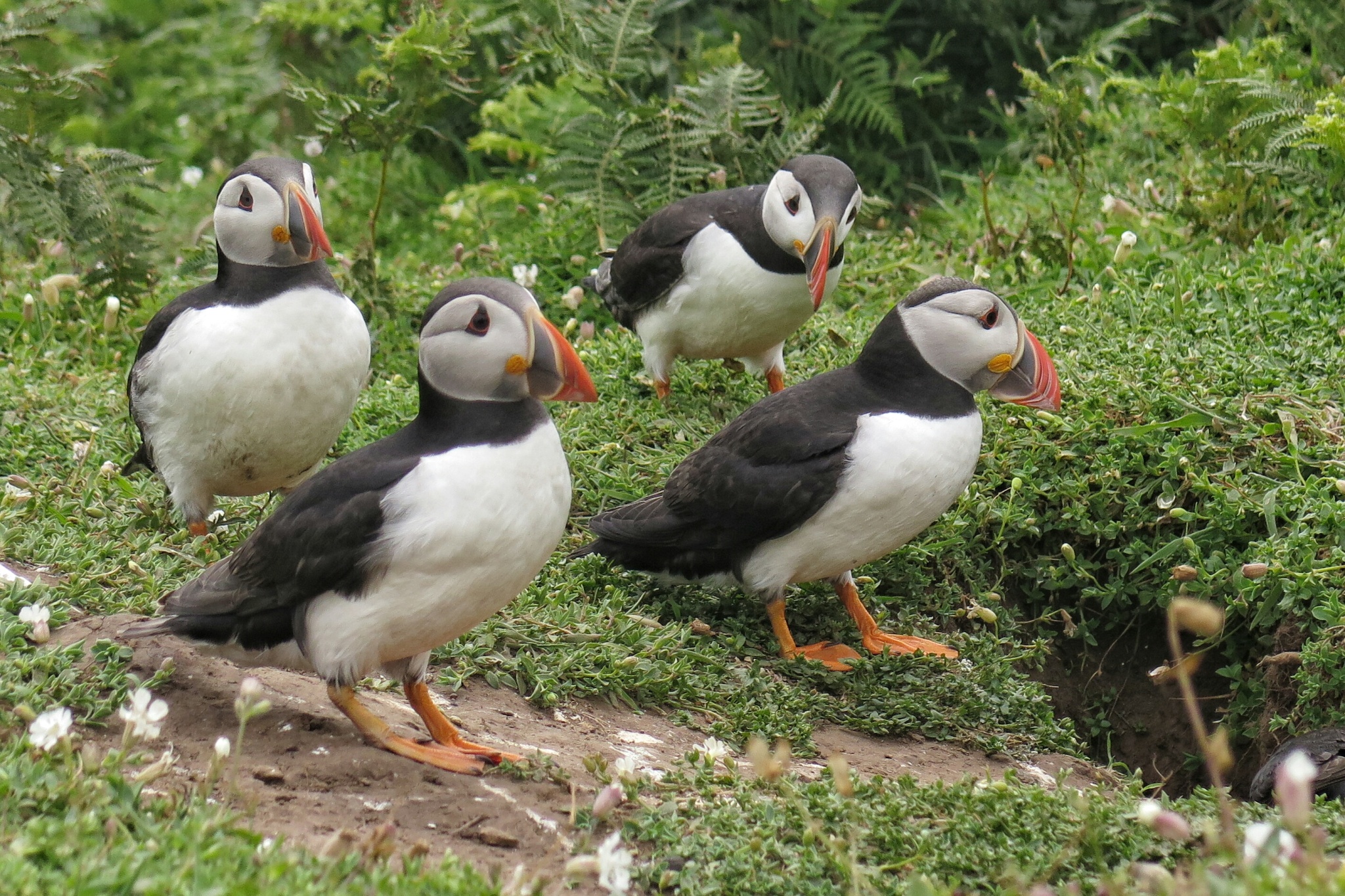 A full day visiting Skomer Island to see these very cute puffins. Masses of them wander amongst us without any fear of humans, even though there were a lot of chicks. They are so comical with their inquisitive looks, their waddly little dances, and their awkward take offs and landings.