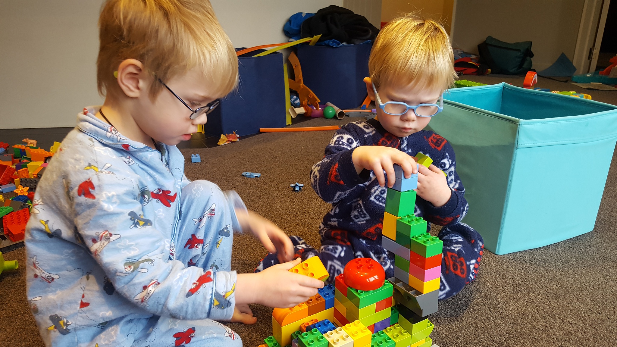 This morning the boys managed to work together to build a duplo castle, well it was their impression of a castle could look like.