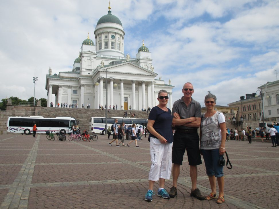 Photo taken in Senate Square with Helsinki Cathedral in the background.