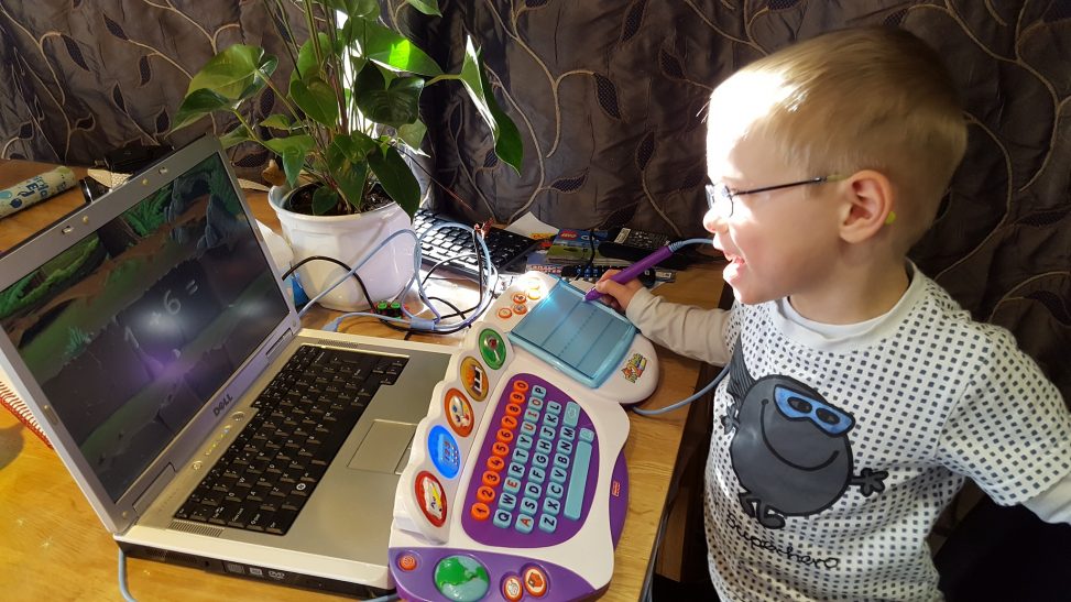 So, as a special treat for CJ, we set up his computer so he could play is counting game. He absolutely loves playing all the different levels, whether it be counting, writing or finding objects. I think the fact that there are dinosaurs and trains along the way, definitely helps to keep his interest!