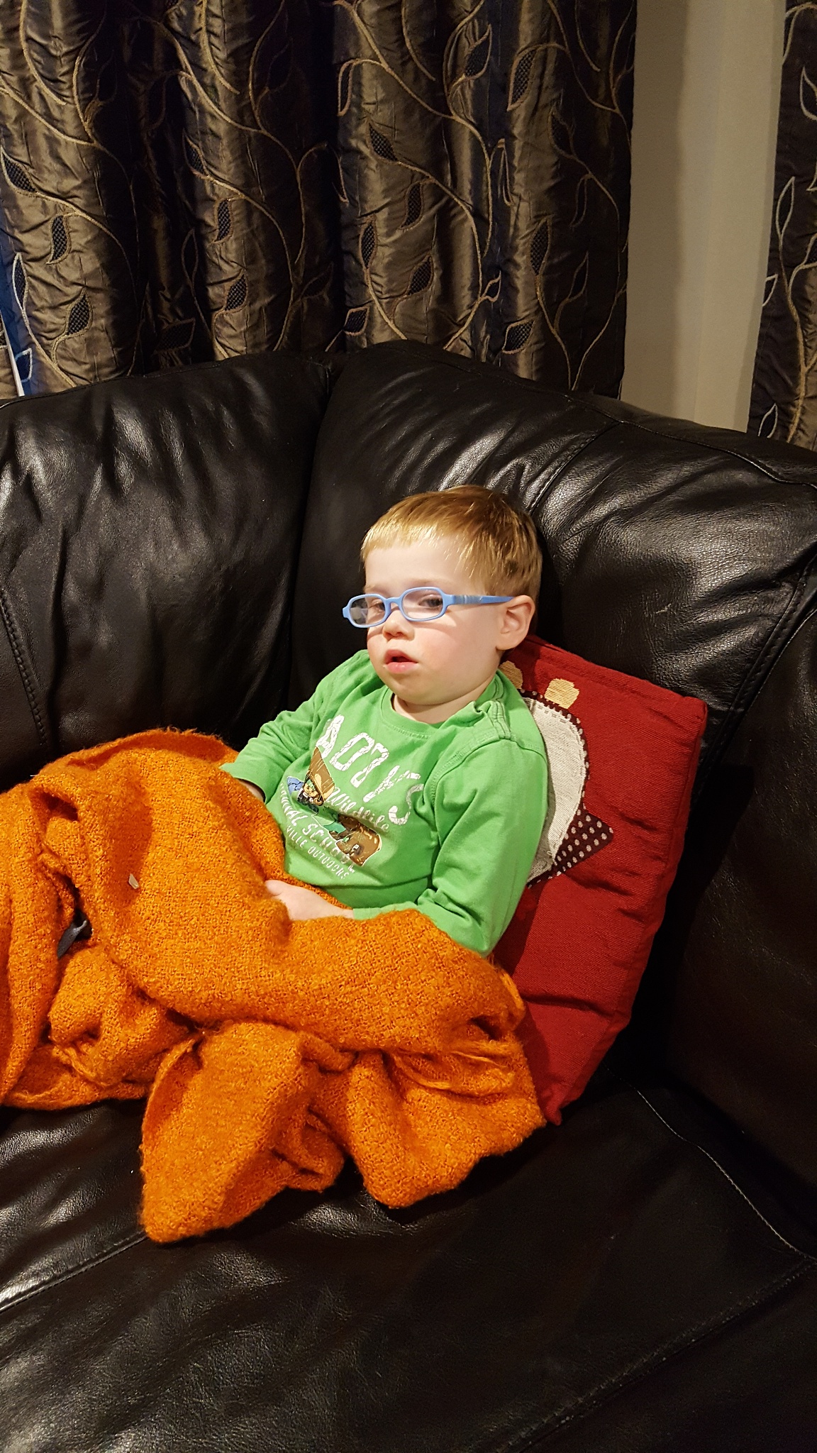 He had found a rug and was happy sitting all cuddled up on the couch. It was so cute, I turned on Ben and Holly for him to watch.