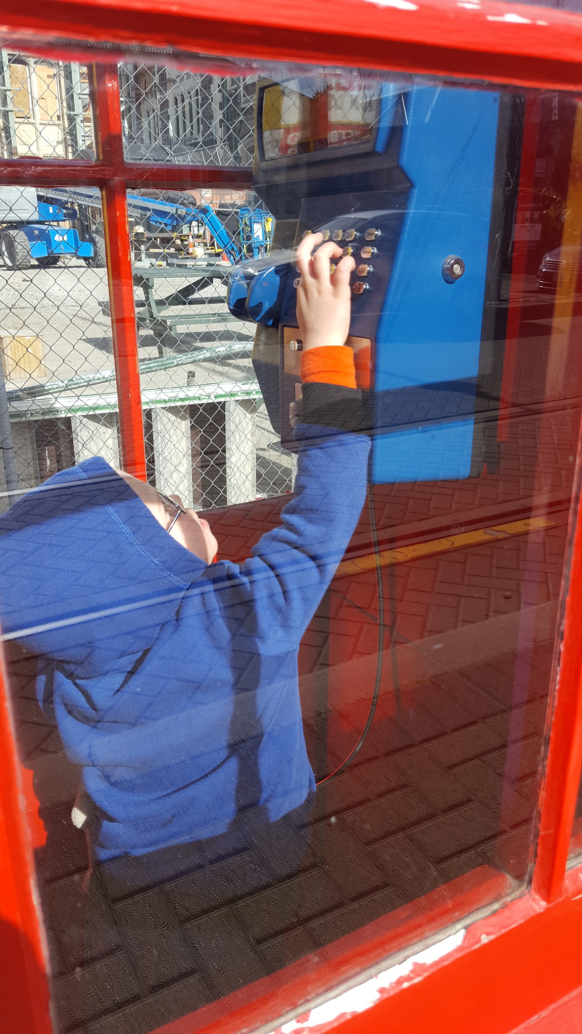 Whenever we see a bright red phone box, CJ has to go in – he is fascinated by the whole concept of a box with a huge phone in it!