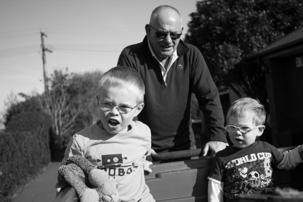 Rides in the little lawn mower trailer ………. easy for boys but a quite a bit of pushing for a grandad