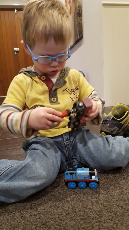 Luckily, a quick tap “fixed” thomas and it wasn’t long before LJ was back zooming around the train track!