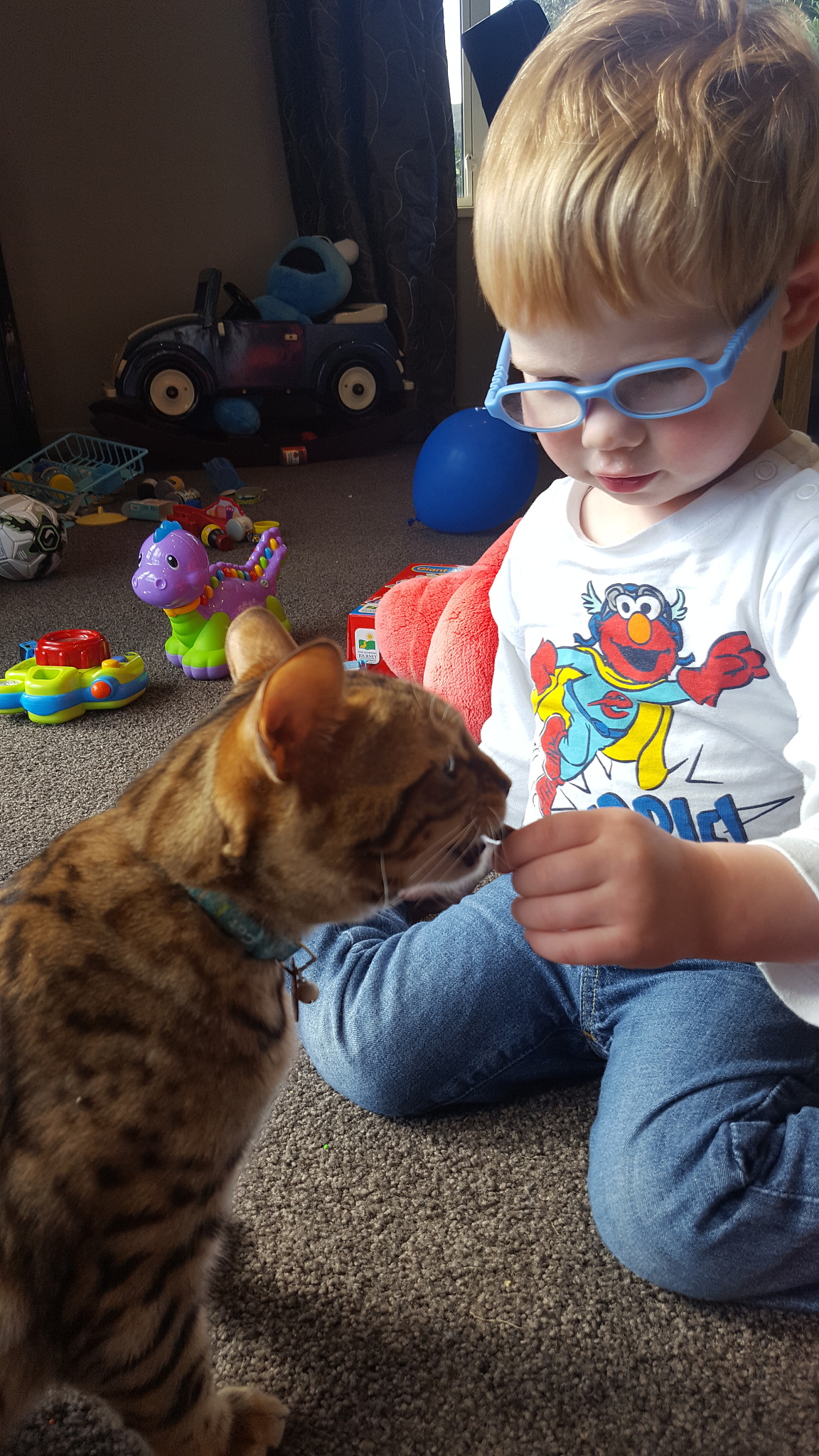 LJ loves Toffee, he especially loves feeding her. And their newest trick is handing feeding cat treats.