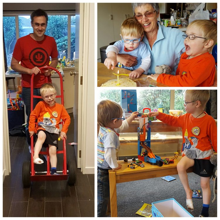 And going to bed had never been as much fun – S2 wheeling him table to door art easel carried the rest of the way. Hopefully he can have another good nights sleep to help his foot heal.