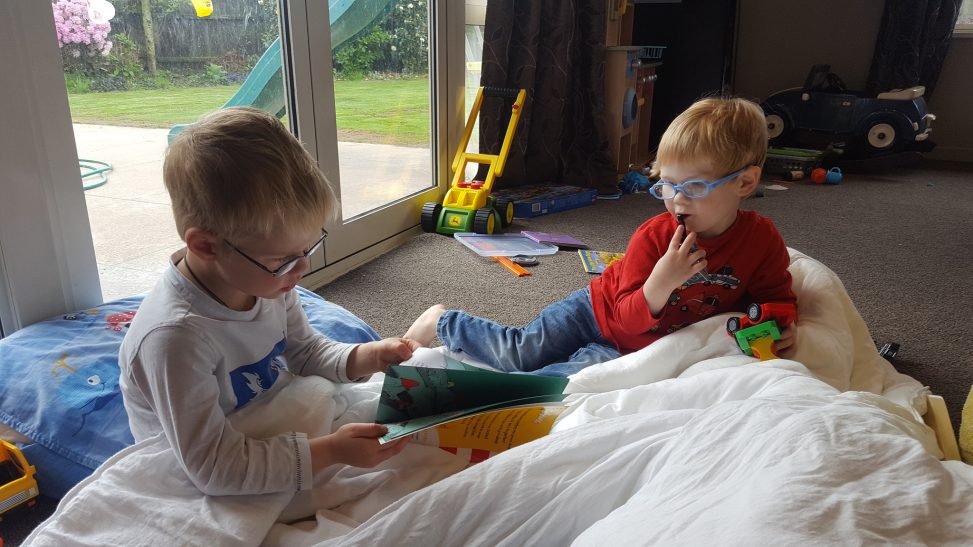 By late afternoon, and after a slightly busier day than planned, CJ decided that he wanted a rest, so he got his pillow and duvet (to make himself a bed) and started reading some stories to LJ. A perfect way to end the day!