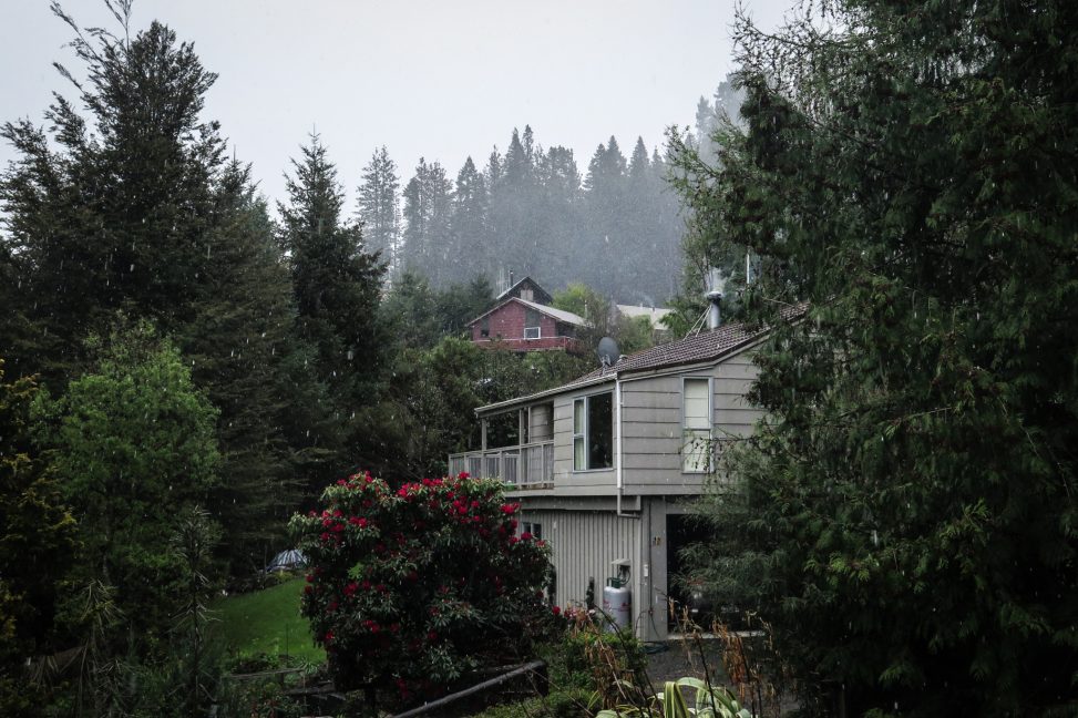 A quick coffee before our swim then ………… the skies darkened, the temperature dropped, and the snow started!!! Brrrr – at 2.7C we decided a swim was not such a good idea!!!