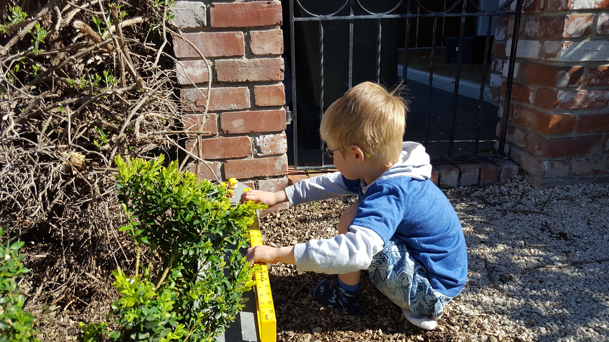 Today CJ helped S2 build some of the wall for our herb and vege patch. He and Rubble (his paw patrol friend) were in charge of making sure it was level.