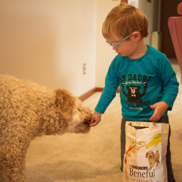 An animal loving boy A dog who loves treats And a big bag of biscuits 🙂