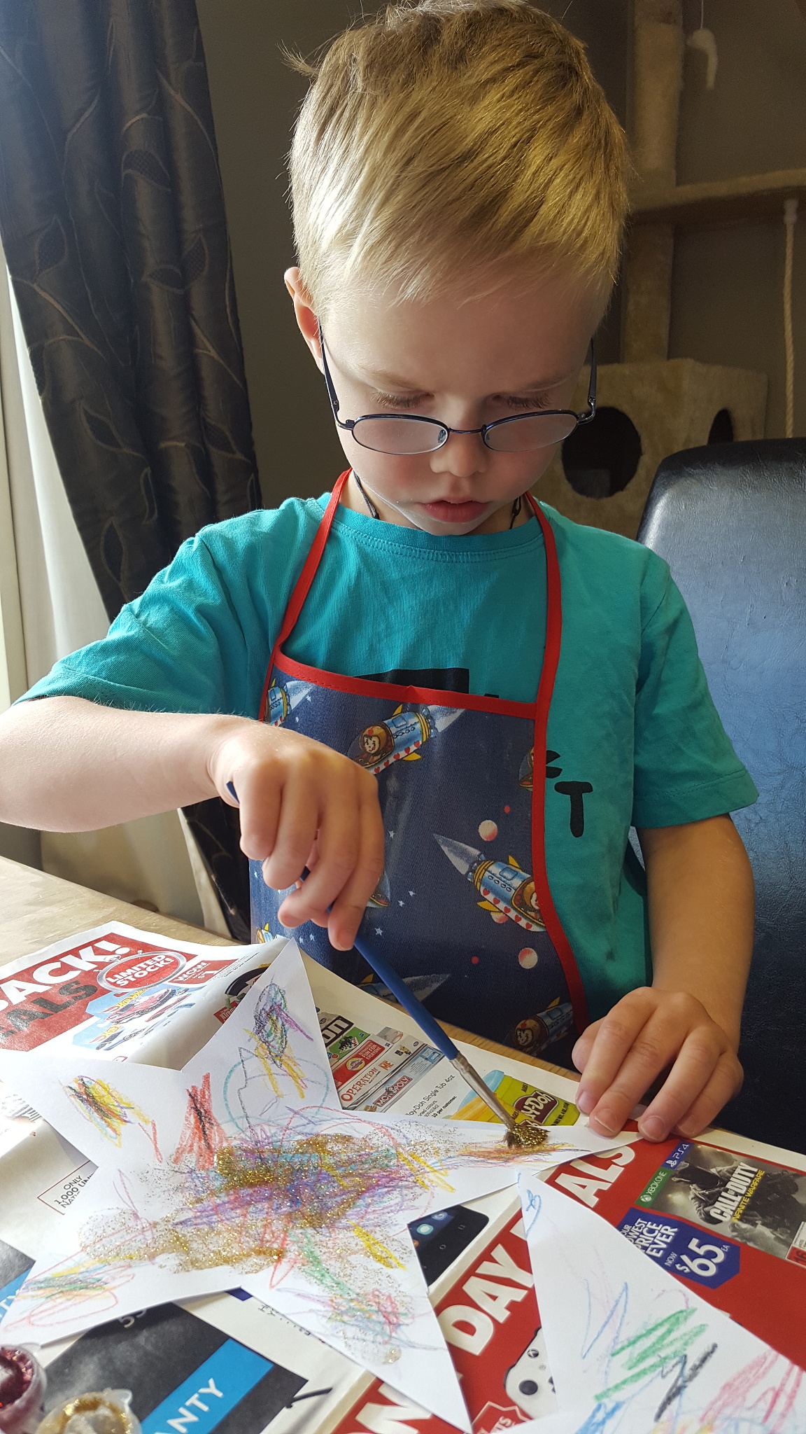 So after layers of crayons, glitter paint and more glitter – it was ready.