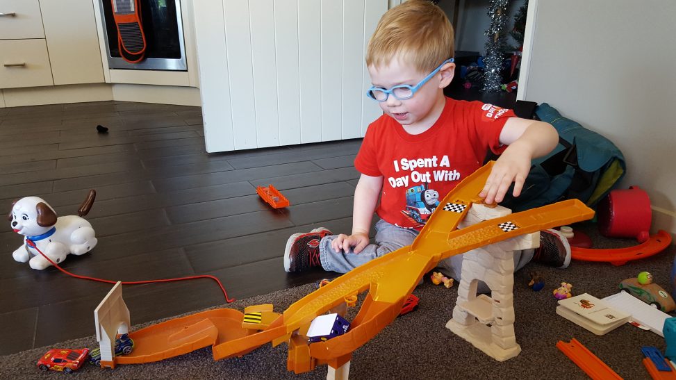 He’s seen it before, but today he learnt how to use it. He spent ages trying out different cars to see what ones would race down the track and what ones got stuck.