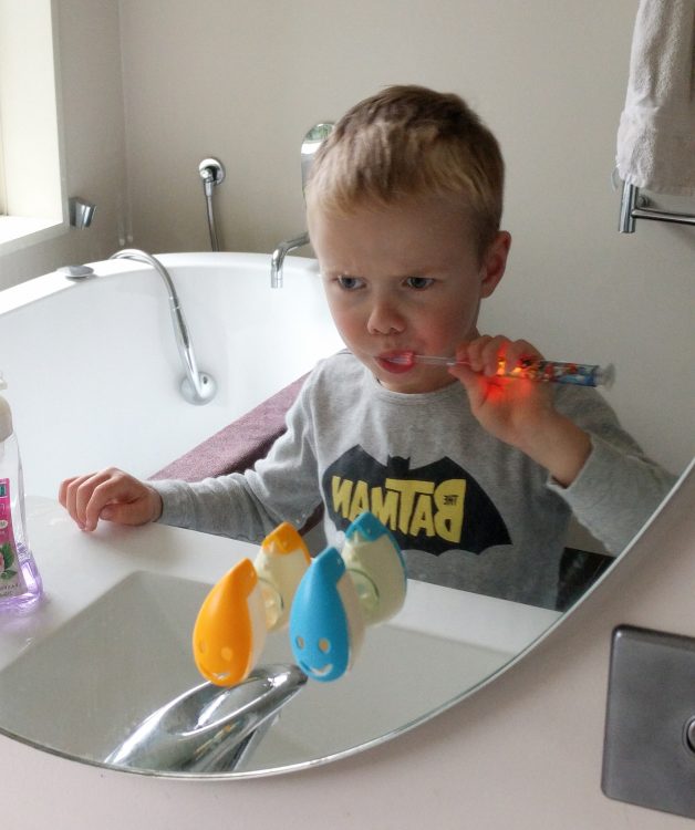The concentration on brushing back and forth made me laugh. So cute.