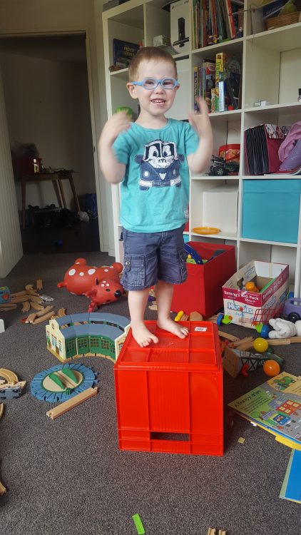Look what I can do Mum – I can empty out the box so that I can stand on the it!