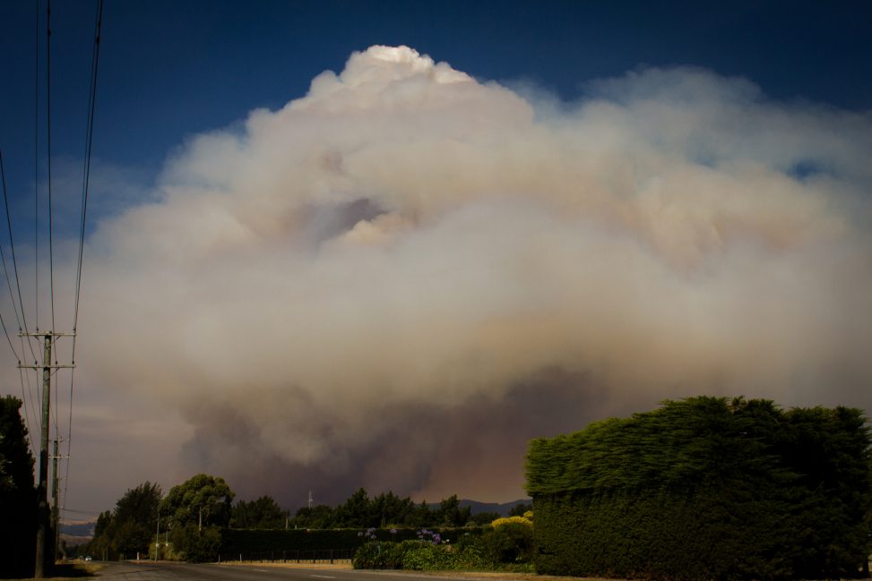 The day started calm and the fire seemed to be under control around midday. I was making jam and could the smoke out my kitchen window about 3pm when suddenly a mushroom cloud exploded into the sky. Apparently the fire had moved into the new Adventure Bike Park and the pylons through there had exploded. It was an incredible sight and suddenly the fire was obviously uncontrollable and highly dangerous.