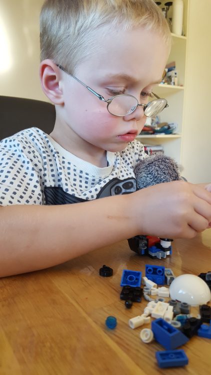 With that extra token he was allowed his surprise – a mixel! He was so excited – sat down and opened it immediately. And after a lot of concentration, he completed it all by himself.