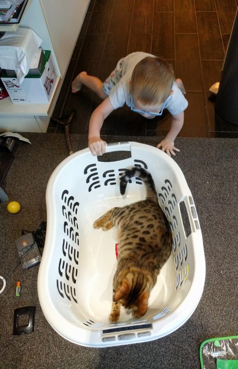 LJ declared the washing basket a ‘Boat’ and sat in it for a while this morning.