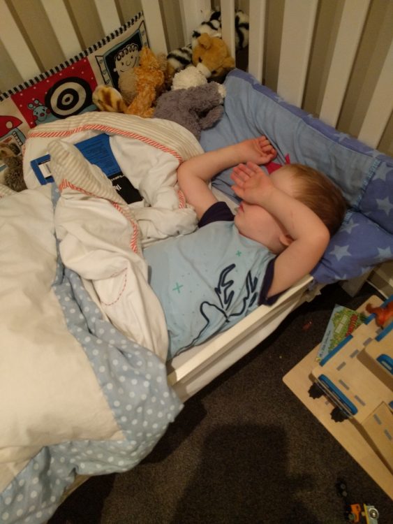 Often we go in to re-sort out LJ at night, only to find he’s got himself out of bed, opend his curtains, found his glasses and a book, and then cuddled back into bed and fallen asleep. Who knows how long he ‘reads’ for, I suspect not long and it’s more just about a ‘routine’ he’s developed.