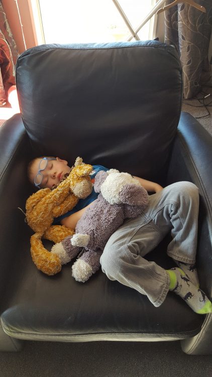 After a day of running around, swimming and playing at Nan’s, poor LJ was so exhausted that I managed the extremely rare achievement of getting him out of the car while sleeping and putting him down without waking him!