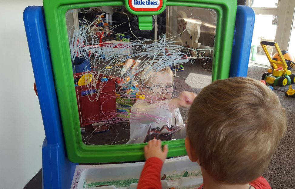 Having a double sided art easel is definitely coming in handy now that both boys love their drawing so much!
