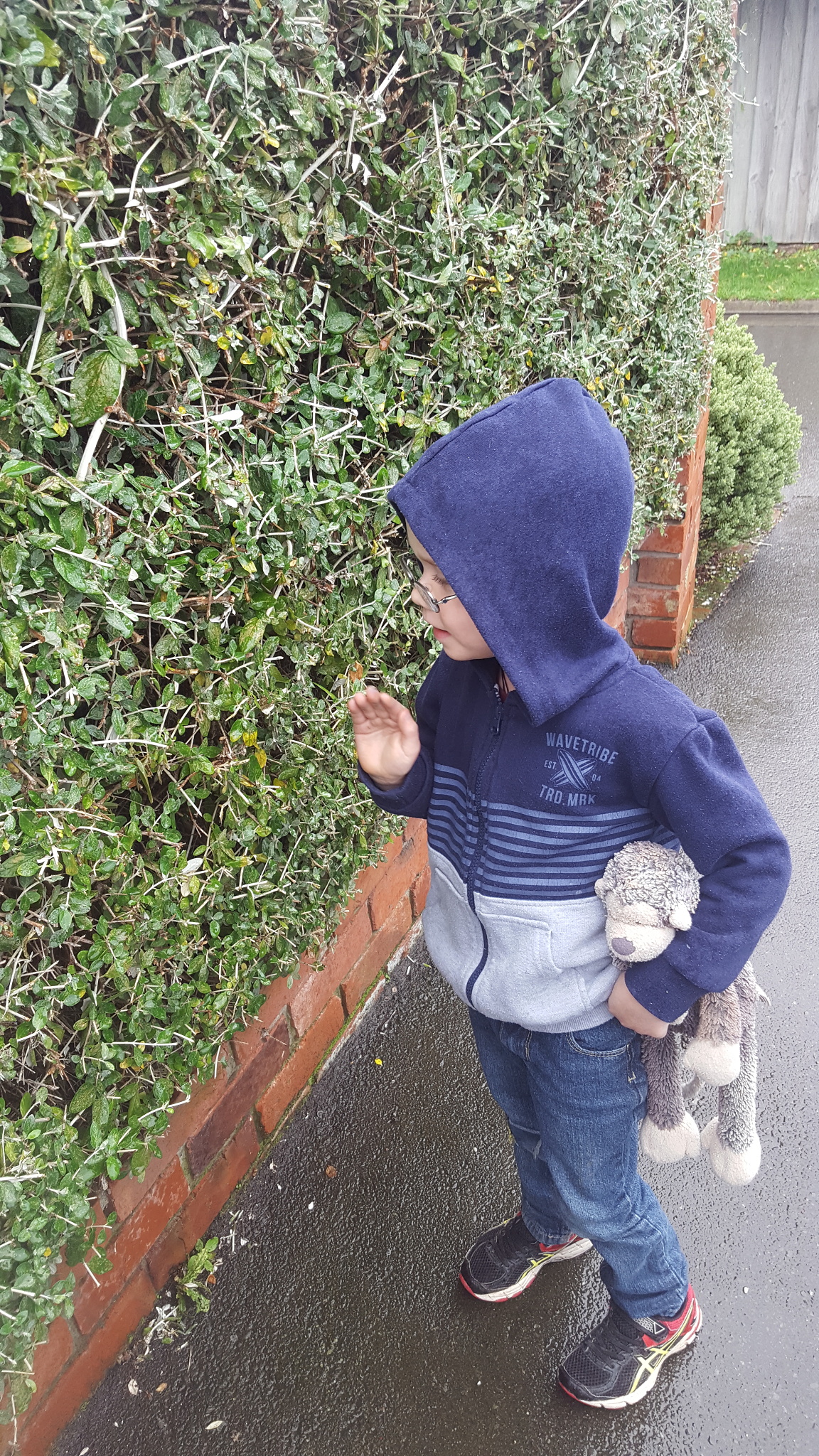At the weekend we found a couple of grasshoppers in the bushes, so CJ took them to kindy for ‘show and tell’.