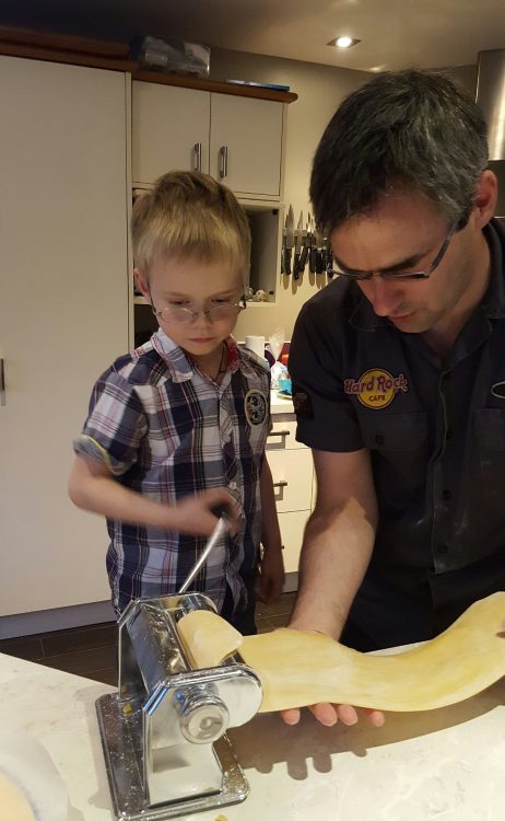 Once we got home, CJ helped S2 make pasta. He particularly enjoyed rolling out the dough but the best bit was definitely eating the finished product!