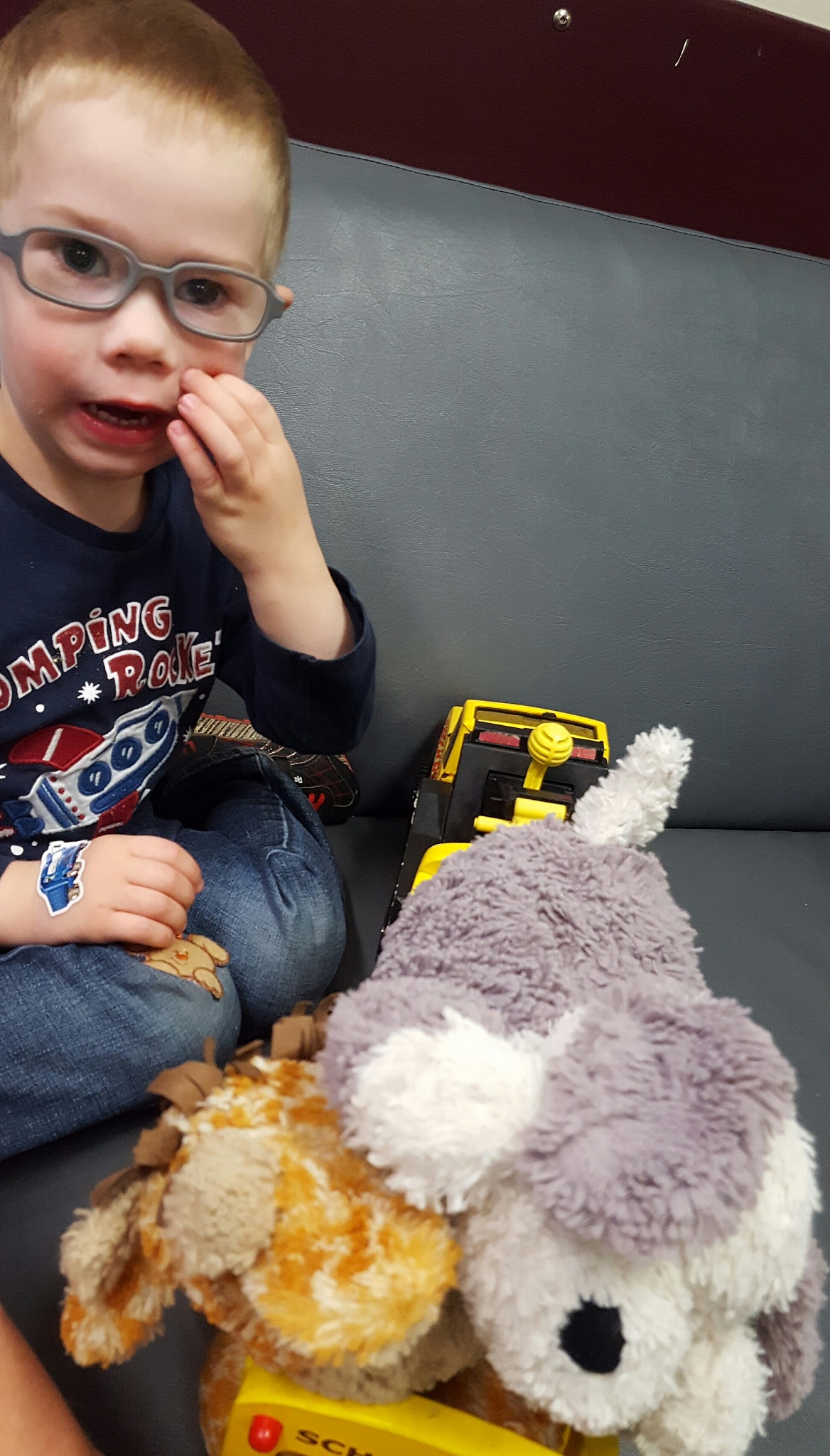 The first tests went well and the boys had the drops put in for the next set of tests. While we waited for their eyes to dilate fully, they sat and had a snack. Poor LJ didn’t really understand what was happening, so was very subdued.