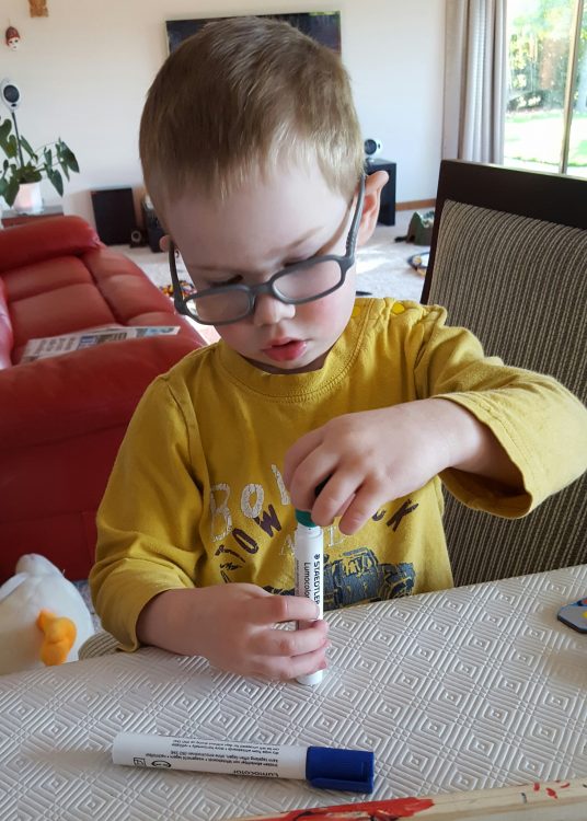 Although, putting the lids on the pens was extremely fascinating and he took a while experimenting with that process. I’m always amazed at what catches his attention, often it’s the simplest task that he needs to investigate and learn from.