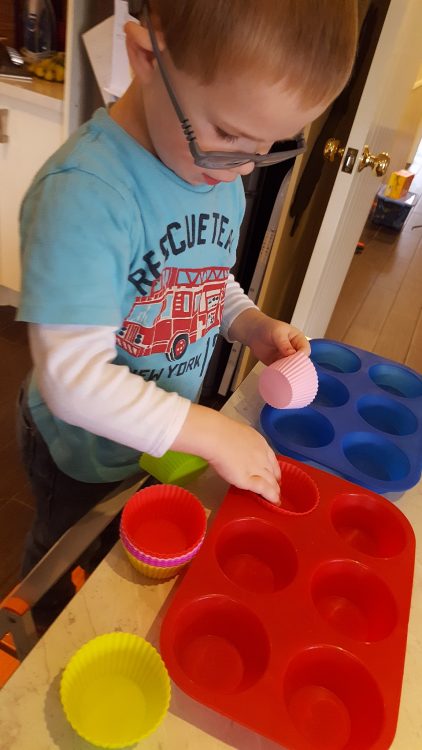 Well, they ended up being more like banana and the odd chocolate chip muffin after the boys adopted the one for me, one for the mix approach when adding the chocolate chips 🙂